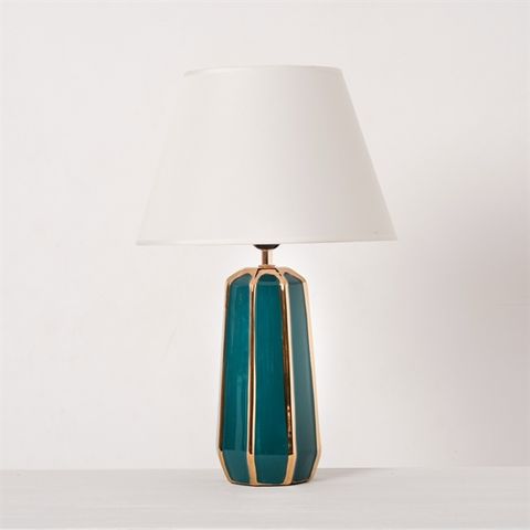 Đèn bàn thân gốm xanh chao vải trắng E27 VLDBGM-038
