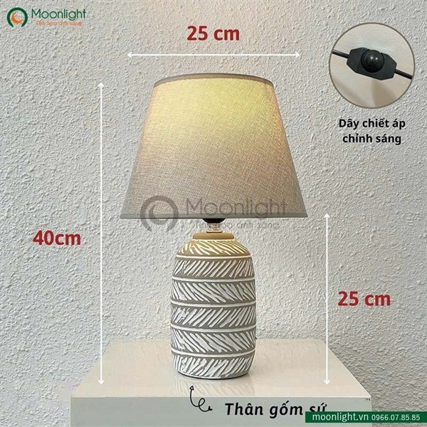 Chất liệu: Chao đèn bằng vải + Thân đèn bằng gốm sứ.