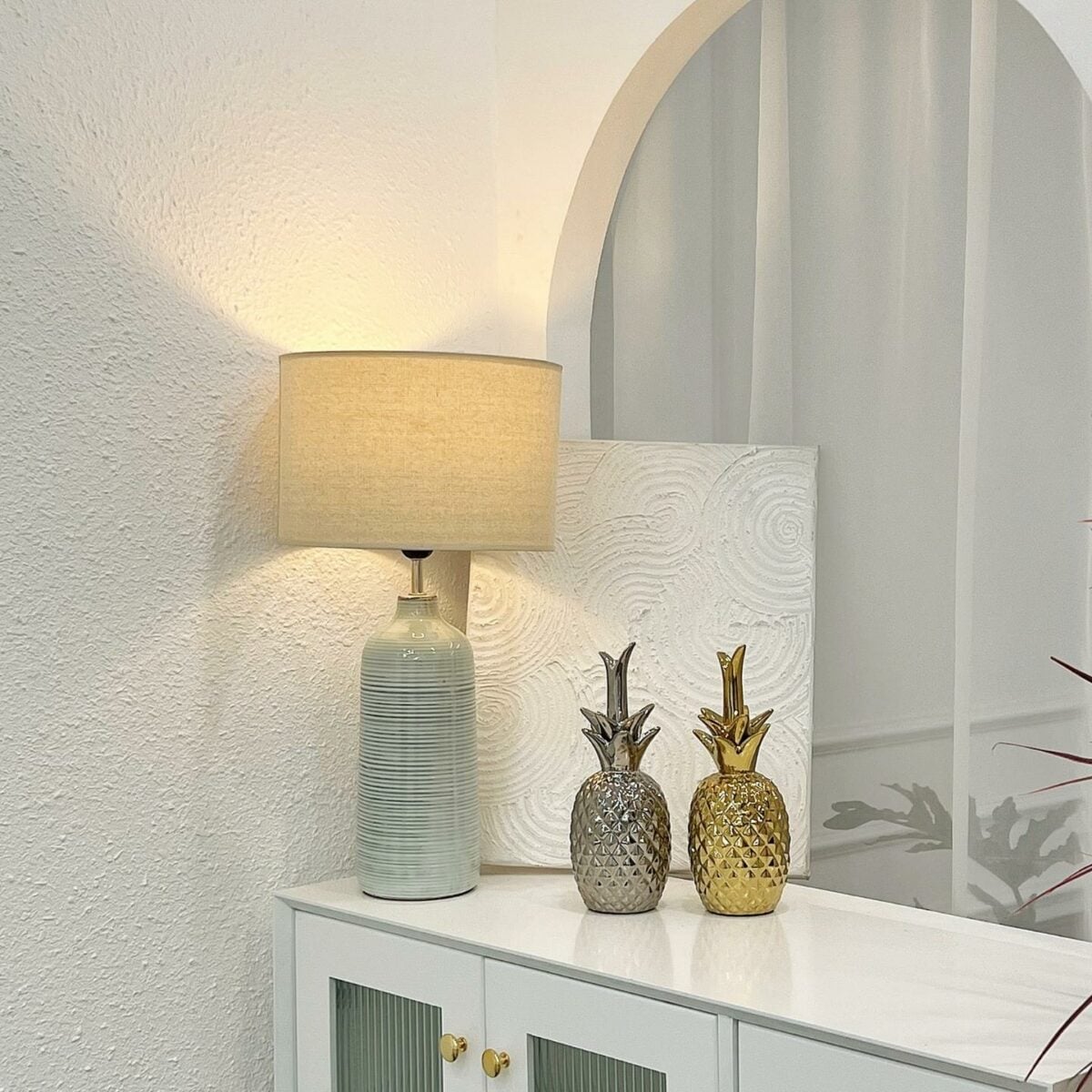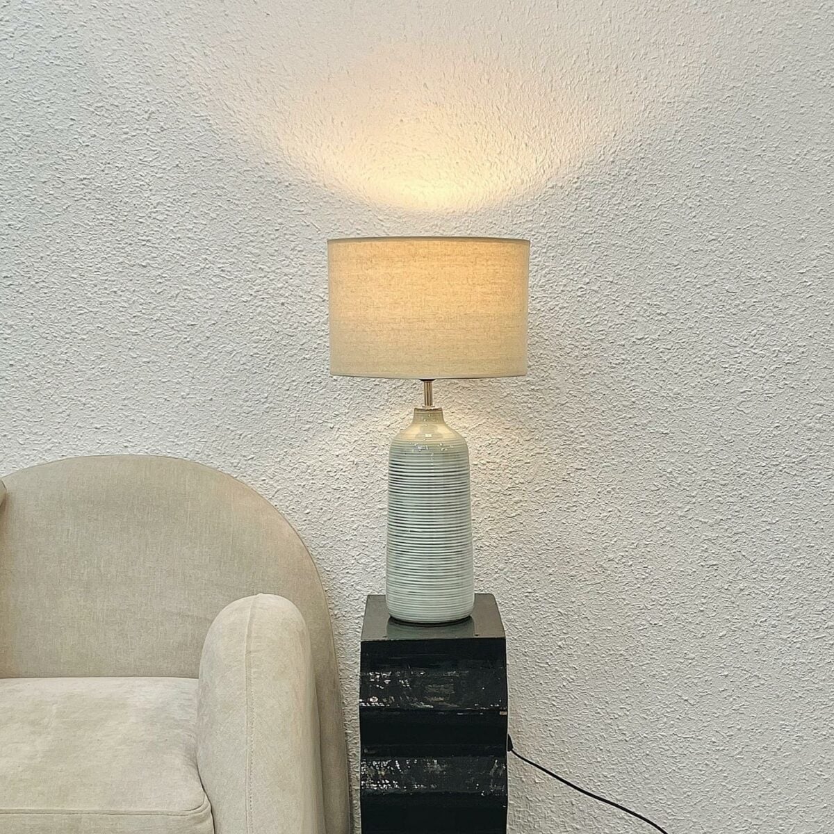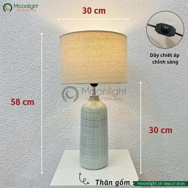 Chất liệu | Thân gốm sứ, chao làm bằng Fabric |