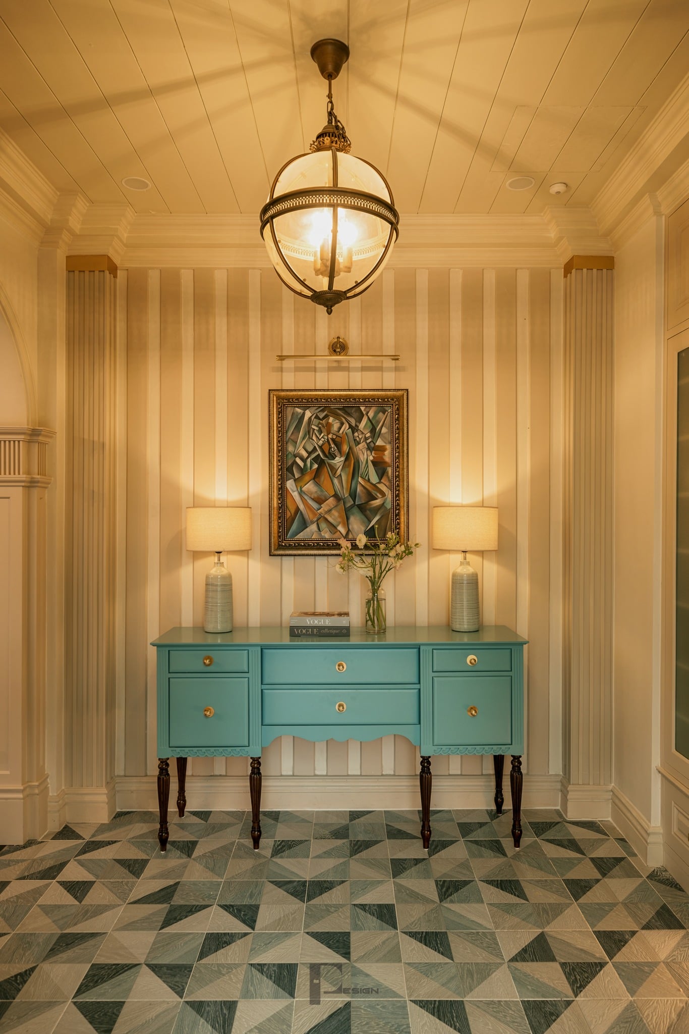 Thiết kế với kiểu dáng bình lớn kết hợp sắc xanh lạ mặt cùng các đường viền tròn xung quanh. Thân đèn được lấy ý tưởng thiết kế từ phong cách cổ điển.