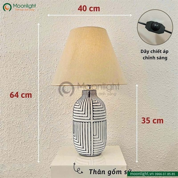 Chất liệu | Thân gốm sứ, chao làm bằng Fabric |