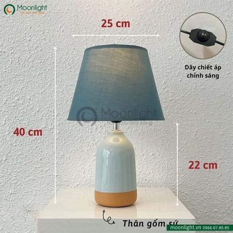 Đèn bàn thân gốm sứ màu xanh da trời DBG007 KT H40*25 E27 VLDBGM-058