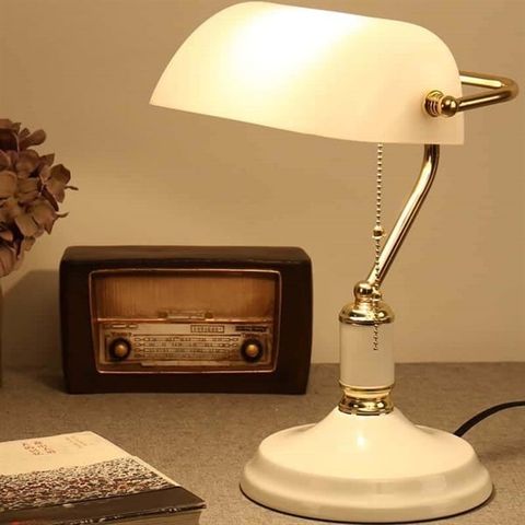 Đèn bàn thân hợp kim trắng chao thủy tinh trắng DB803 VLDBHK-017-WH