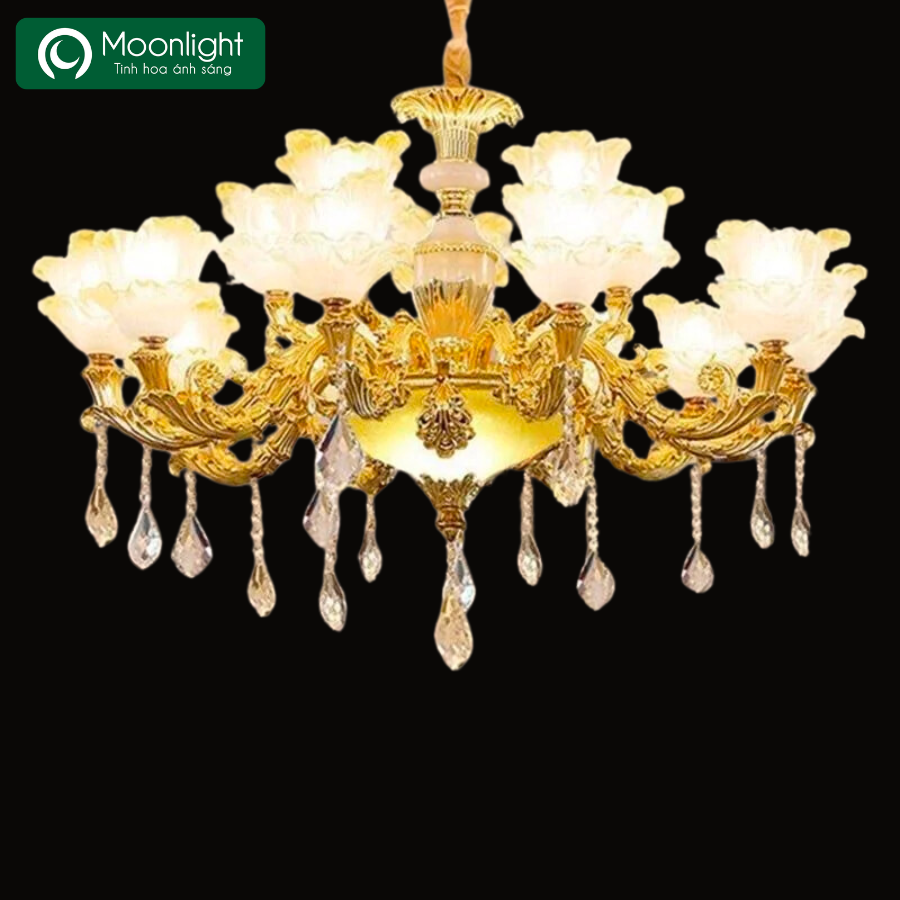 Hình ảnh thực tế đèn chùm hợp kim 12 tay VLCHHK-418-YE