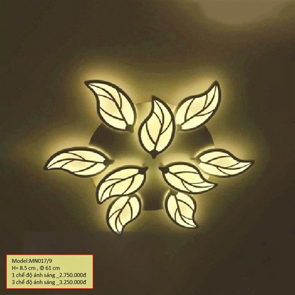 HT Đèn mâm mica 9 cánh lá h=85mm, 610mm 3M MN017/9-3M HTDMMI-009-AB