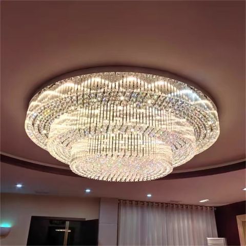 Đèn mâm pha lê tròn 3 tầng viền pha lê ống tròn D80cm MV9182 HTDMPL-008-AE