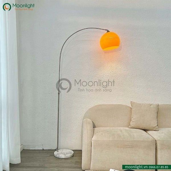 Đèn sàn cần cong fishing chao đèn màu cam size lớn DCLA016C KT H220*30 E27 VLDSCC-024