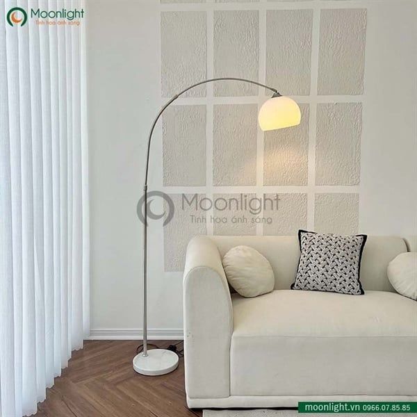 Đèn sàn cần cong fishing chao đèn màu trắng size lớn DCLA016T KT H220*30 E27 VLDSCC-025