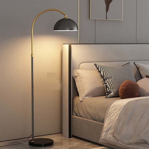 Đèn sàn cần cong thân nửa đen vàng chao hợp kim đen VLDSCC-035