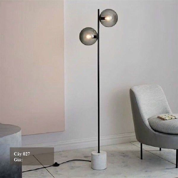 HT Đèn sàn hiện đại thân đen, 2 bóng chao khói Cây 027 HTDSHD-003