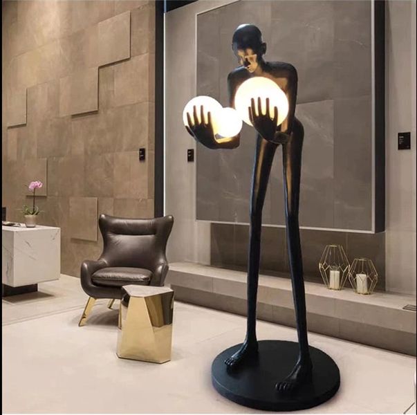 Đèn sàn hiện đại tượng người đàn ông ôm bóng D80*cm * H180cm 12W trọng lượng 40KG VLDSHD-022