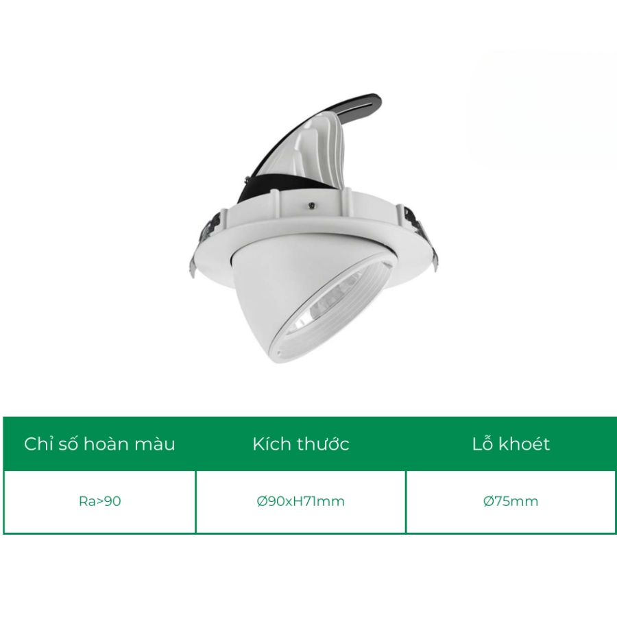 - Đa dạng công suất, góc chiếu, đa dạng kích thước lỗ khoét trần.