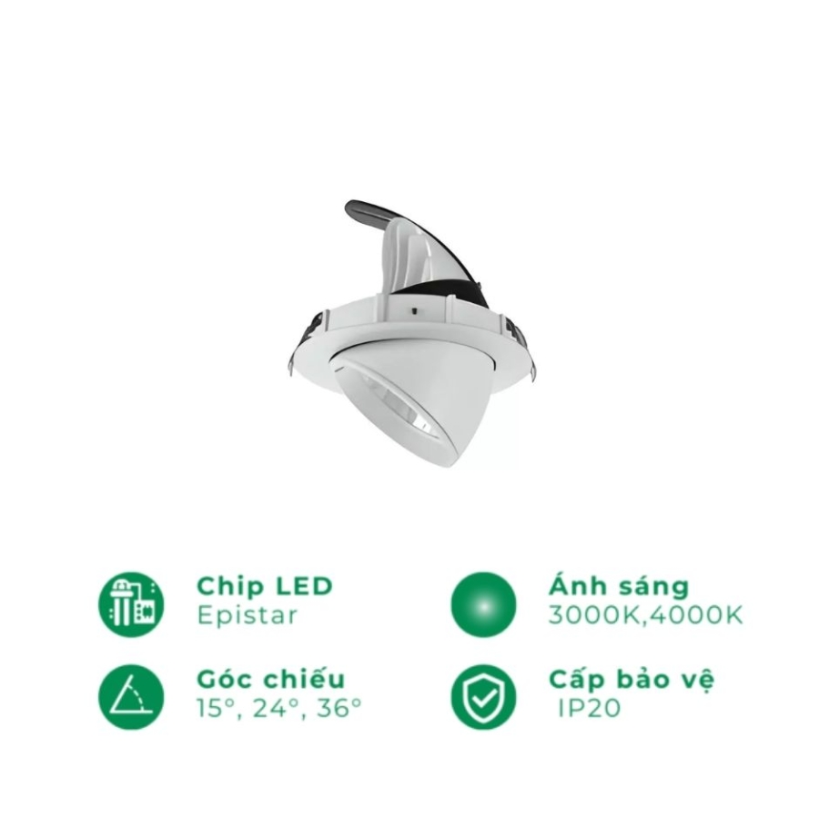 - Đèn sử dụng chip Led COB Epistar mang đến nguồn sáng mạnh mẽ, tập trung với góc chiếu nhỏ 15*, 24*, 36* giúp tăng hiệu quả chiếu điểm cho vật thể được chiếu đến.