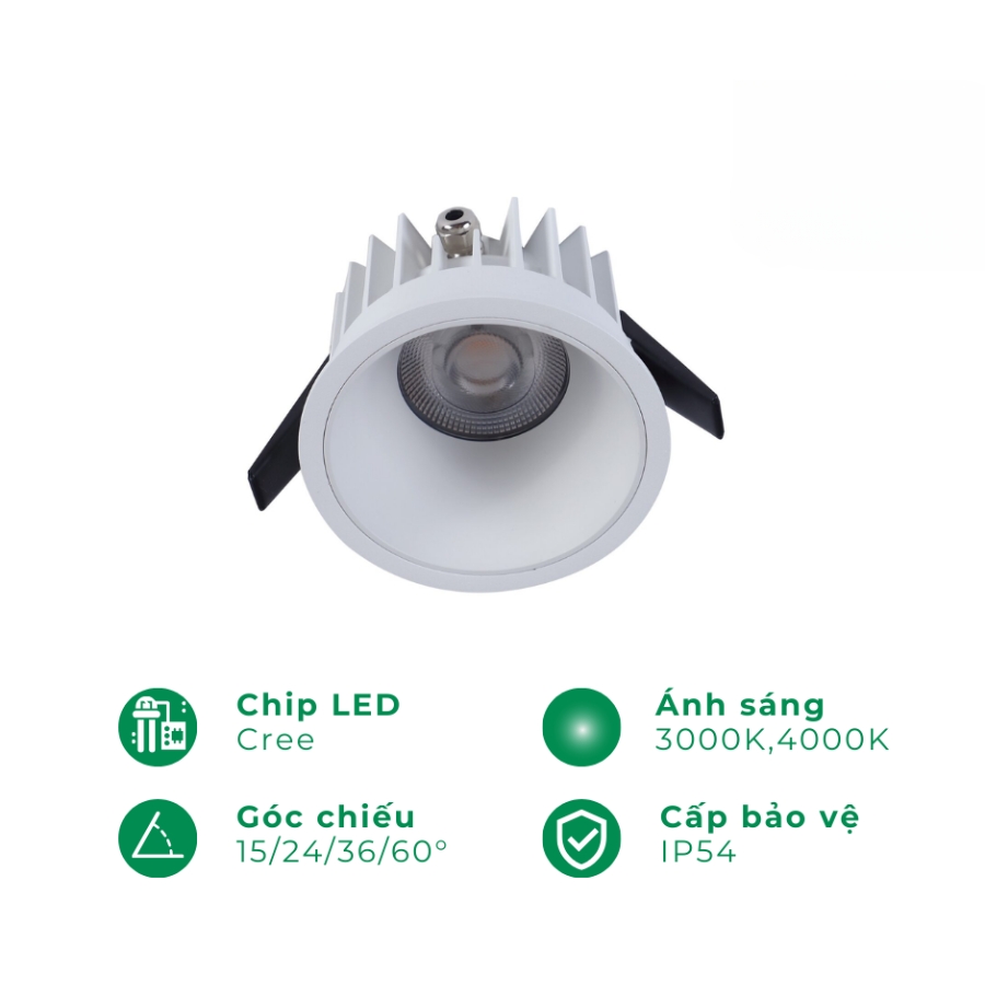 - Ánh sáng chiếu điểm giúp nguồn sáng tập trung hơn. Đèn sử dụng chip led Cree mang đến nguồn sáng mạnh mẽ, tập trung với nhiều góc chiếu giúp tăng hiệu quả chiếu điểm cho vật thể được chiếu đến. Với chỉ số hoàn màu CRI>90 cho màu sắc chân thực nhất như dưới ánh sáng tự nhiên.