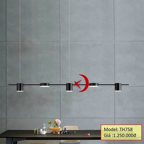 Đèn thả bàn ăn hợp kim 5 bóng màu đen TH758 HTTHHK-026