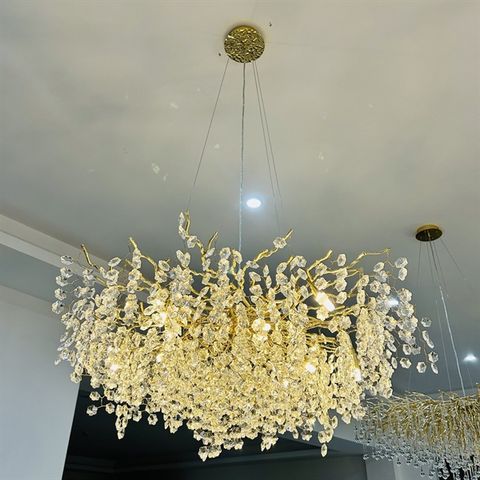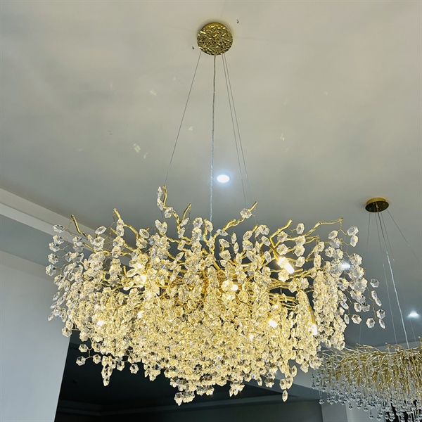 Khung đèn được mạ vàng và được thiết kế hình những cành cây nhỏ tạo ra một hiệu ứng đẹp mắt, đây cũng chính là đặc điểm được nhiều khách hàng yêu thích bởi sự mới lạ và độc đáo.