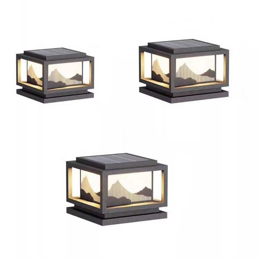 Đèn trụ cổng hàng rào năng lượng mặt trời vuông đen D220, 4.5W 5200mAh VLNTTC-043