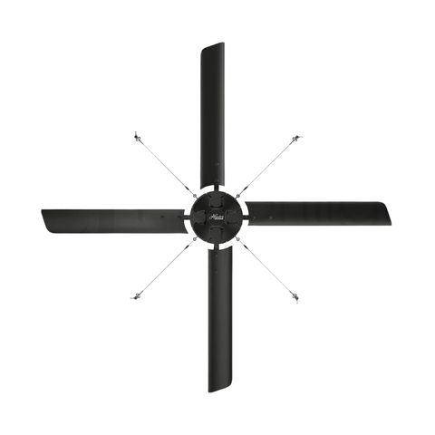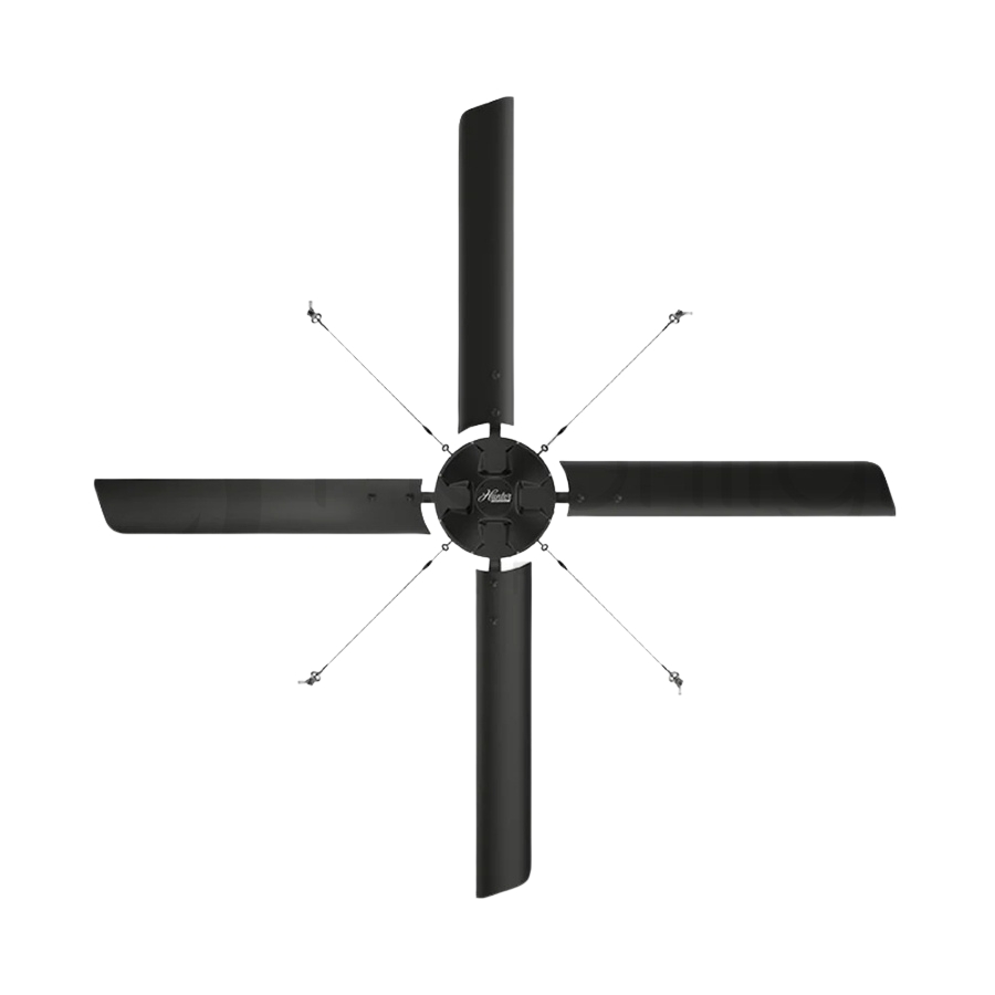 Giá đỡ lưỡi HVLS được cấp bằng sáng chế của Hunter Industrial được chế tạo từ thép cấp kết cấu với hệ thống gắn lưỡi dự phòng. Giá đỡ lưỡi dao đi sâu vào túi lưỡi cắt để gắn chắc chắn vào các cánh quạt. Mỗi cánh quạt HVLS được làm bằng nhôm 6005A, được biết đến với đặc tính bền, linh hoạt và nhẹ. Sự kết hợp này tạo ra một cánh quạt HVLS nhẹ và cực kỳ chắc chắn tạo ra luồng không khí mạnh.